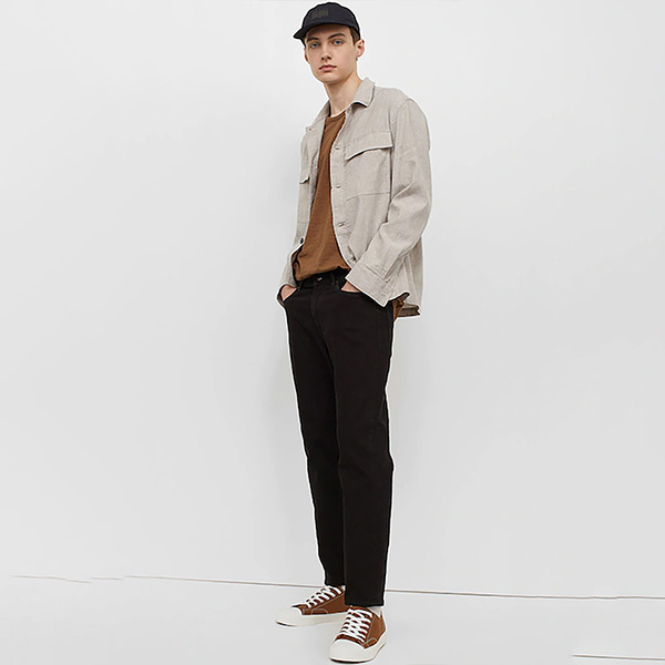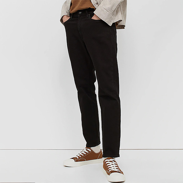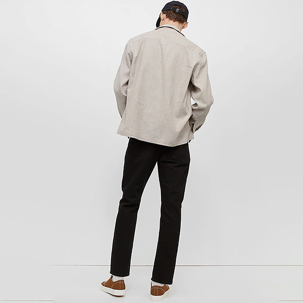 5-pocket jeans in stretch cotton denim with a regular waist, zip fly and button and straight legs with good room for movement over the thighs and knees.