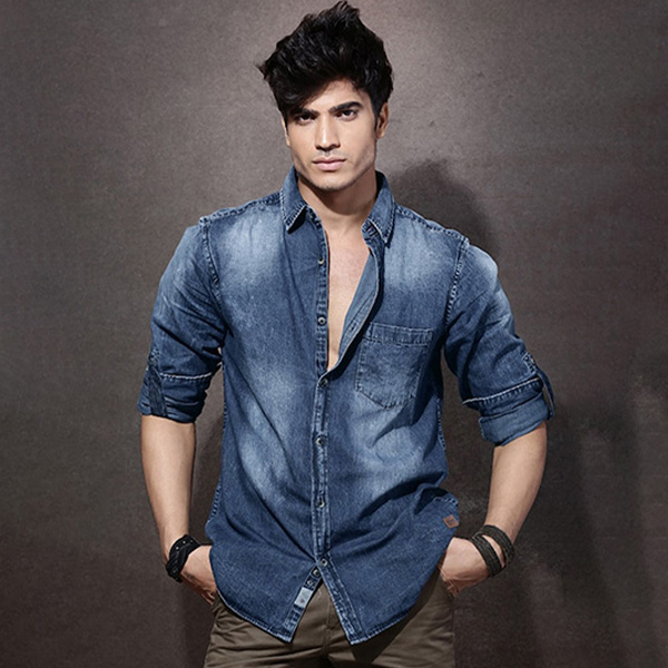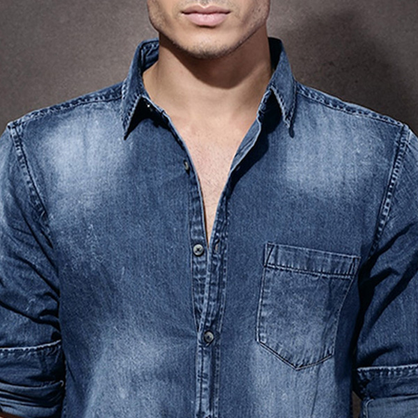Men Blue Denim Washed Casual Sustainable Shirt