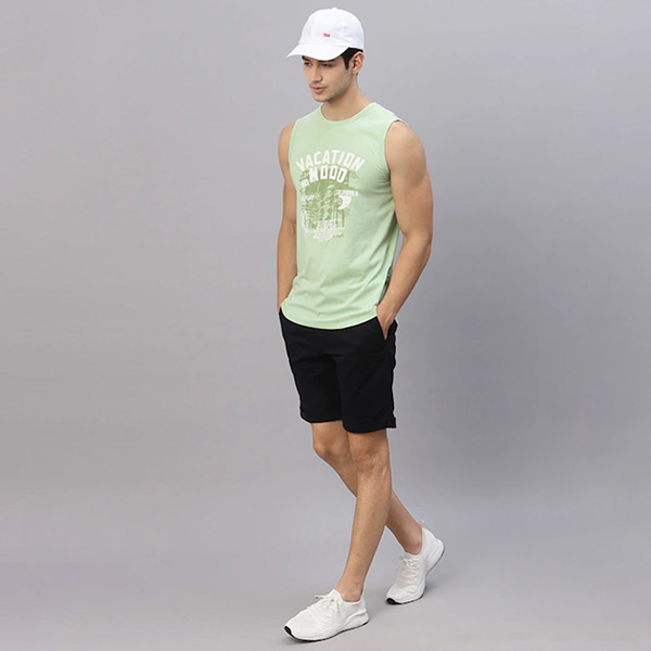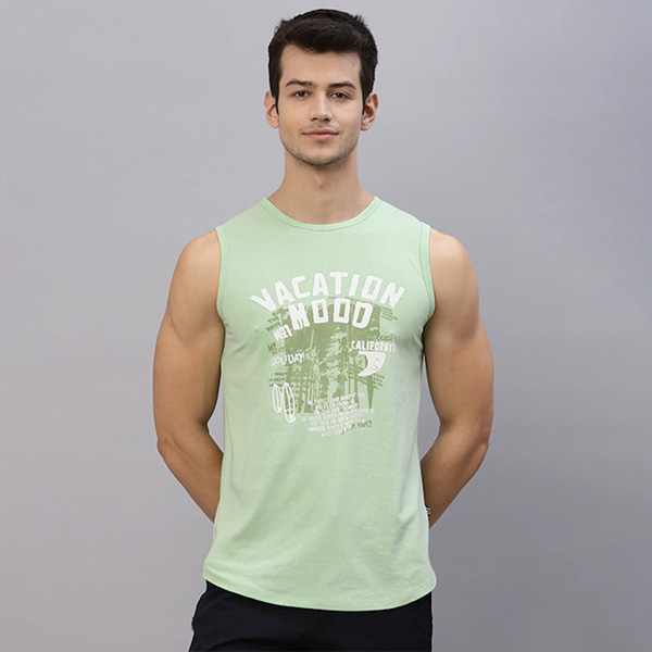 Men Mint Printed Round Neck Sleeveless T-Shirt Vest