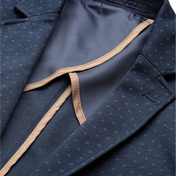 Navy blue self design single breasted blazer, has a notched lapel collar, long regular sleeves and button closure