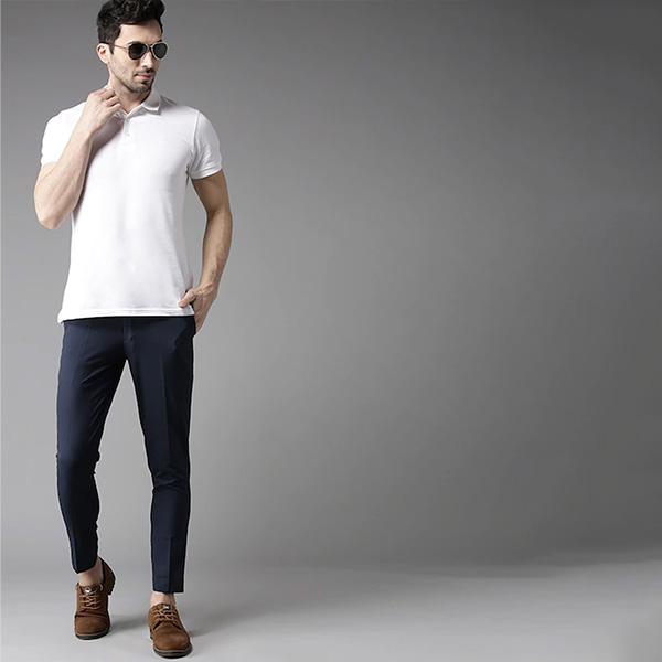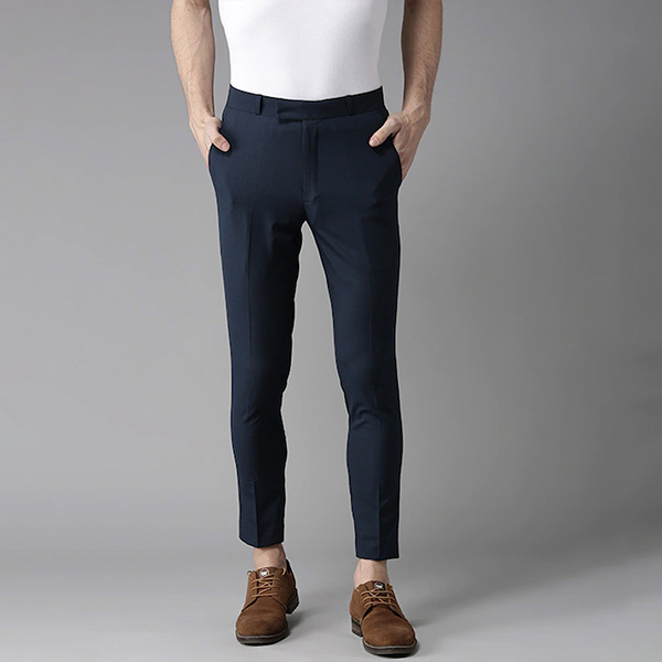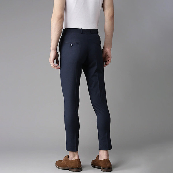 Maintain a handsome style with these classically designed trousers. You can match this navy blue pair with a lightweight sweater and leather boots when you're going to a work luncheon.