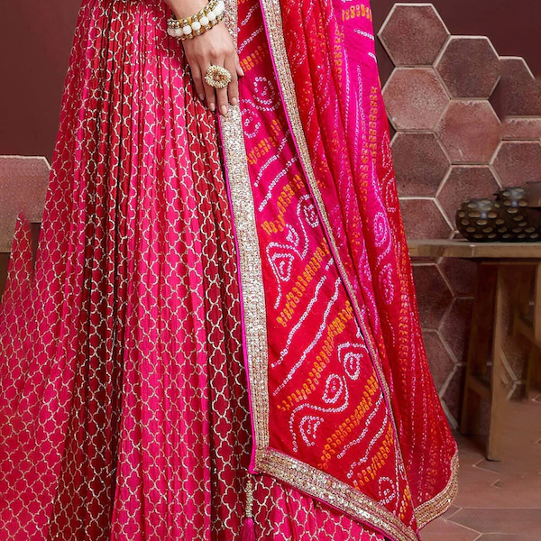 - Lehenga(Semi-Stitched) Flair : 3.5 mtr, waist-43", height-43"; Blouse(Unstitched) : 1 mtr"; Dupatta Length: 2.30 mtr