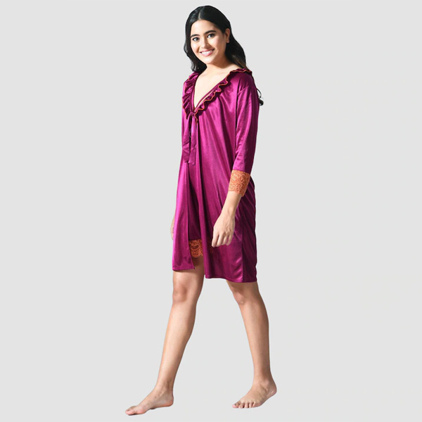 Satin Short Nighty With Robe Nightwear