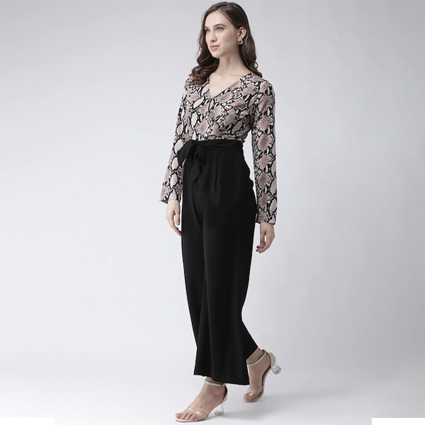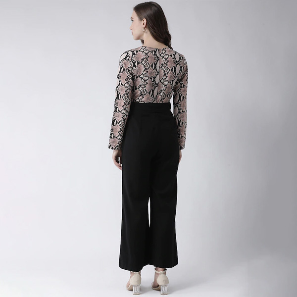 Women Black & Pink Printed Basic Jumpsuit