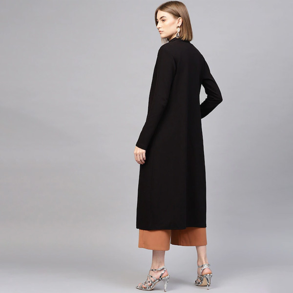 Women Black Ribbed Longline Open Front Shrug